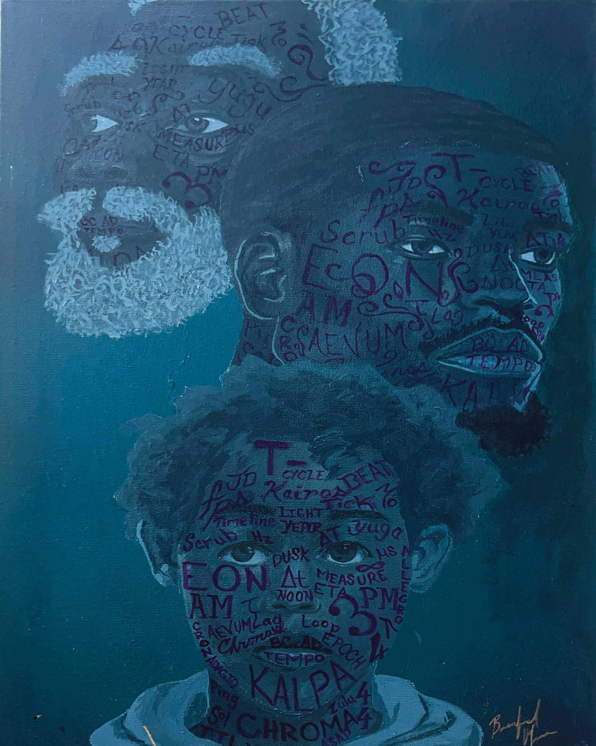 “Kairos” — This piece reflects the power of time’s perfect moments across generations. Words etched on each face show how the past, present, and future shape who we are. It’s a reminder that kairos — the right moment — isn’t something we wait for, but something we step into with purpose.